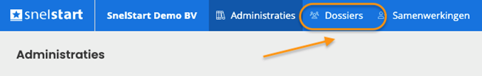 Nadat je bent ingelogd in SnelStart Polaris kun je bovenin klikken op Dossiers
