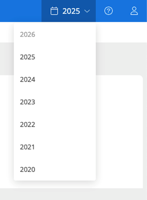 Binnen de modules kun je per jaar een dossier aanmaken. Met andere woorden: binnen een module maak je een aangiftedossier, een jaarrekeningdossier of een salarisadministratiedossier per jaar. Met de jaarselector rechtsboven in de balk kun je eenvoudig het gewenste jaar kiezen.