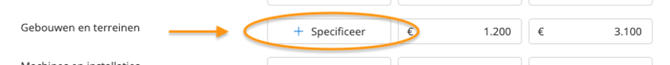 Als er bij een balanspost een waarde ingevuld wordt en er staat een knop ‘+ Specificeer’, dan dien je van de balanspost een specificatie in te voeren. Deze gegevens geven extra informatie over de balanspost en zijn dus voor de belastingdienst van belang bij het beoordelen van de balanspost.