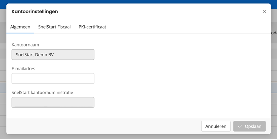 1. De kantoorinstellingen (algemeen, fiscaal en PKI-certificaat)