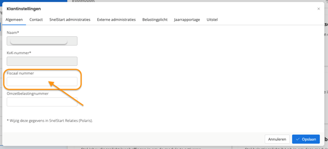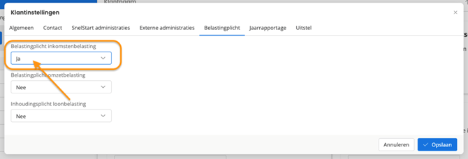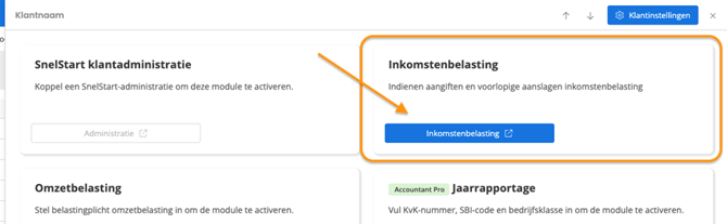 Door bij de klantinstellingen het fiscale nummer (bsn) en de belastingplicht voor de inkomstenbelasting in te stellen wordt de module inkomstenbelasting geactiveerd.
