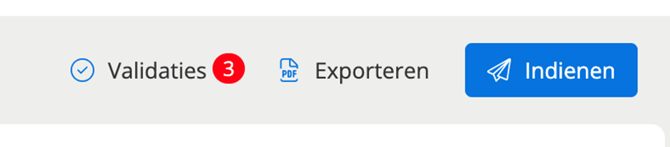 Zodra je begint met het invullen van de aangifte, verschijnt rechtsboven een rood getal bij Valideren. Je kunt dit in eerste instantie negeren. Tijdens het verder invullen van de aangifte zal dit getal automatisch verminderen.