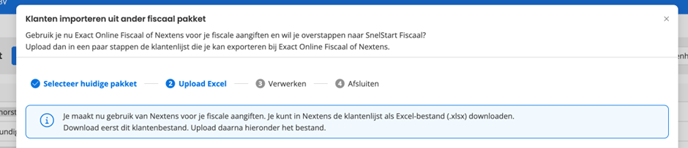 - Is het bestand in het juiste formaat? (.csv voor Exact Online Fiscaal, .xlsx voor Nextens)